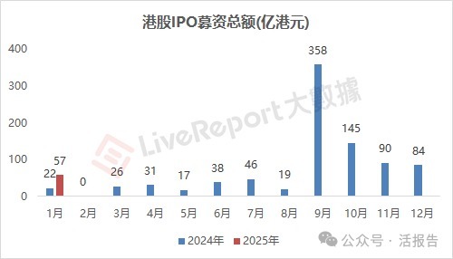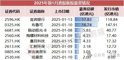 2025年1月新股合计募资约57.3亿港元,同比大幅增长163.3%。以布鲁可为代表的热门新股成功上市并广受市场欢迎,给后续上市的新股注入了更多信心。