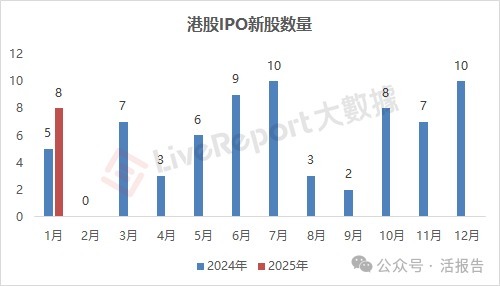 2025年1月,港股市场共有8只新股IPO上市,同比增长约60%。新股发行数量延续自去年下半年以来的上升势头,并有望在春节后得到进一步提升。