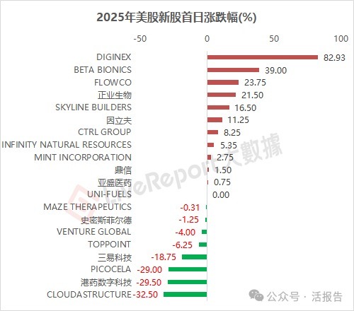 2025年1月,美股市场共有20只新股IPO上市(不含SPAC、介绍、转板),同比增长约67%,IPO发行数量保持回暖。其中,中概股IPO共有10只,占半数。